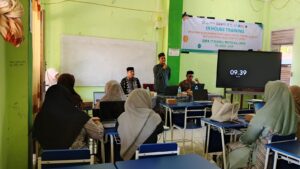 Adapun materi pelatihan yang disampaikan meliputi pembuatan Rencana Pelaksanaan Pembelajaran (RPP) menggunakan aplikasi Queen, penerapan pembelajaran dengan Notebook KLM, serta pembuatan video presentasi berbasis infografis sebagai media pembelajaran inovatif. Materi-materi tersebut dirancang untuk membantu guru mengembangkan perangkat pembelajaran yang efektif, kreatif, dan relevan dengan kebutuhan peserta didik.